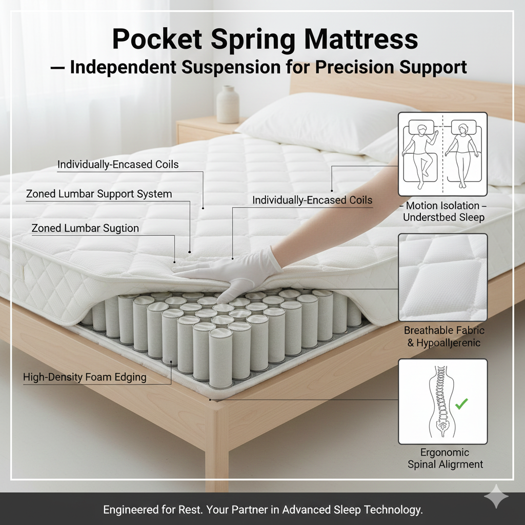 袋装弹簧床垫 — 独立悬架,提供精确支撑